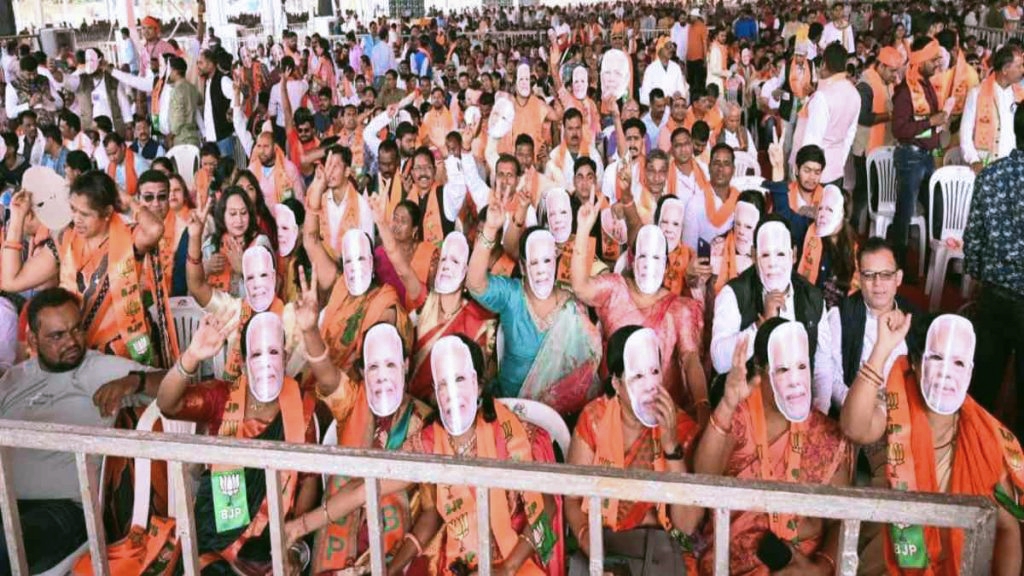 रायपुर. आज साइंस कालेज मैदान में हुए शपथ ग्रहण समारोह में हजारों की संख्या में मातृ शक्ति की उपस्थिति रही. महिलाएं प्रधानमंत्री नरेंद्र मोदी का मुखौटा लगाकर आई थीं. इन महिलाओं में अभूतपूर्व उत्साह छलक रहा था. महिलाओं से पूछने पर इन्होंने बताया कि हम लोग आज खास तौर पर प्रधानमंत्री नरेंद्र मोदी का आभार व्यक्त कर रहे हैं. उन्होंने संसद में महिलाओं के लिए नारी शक्ति वंदन अधिनियम पारित करा महिलाओं की मजबूती का रास्ता तैयार कर दिया है.