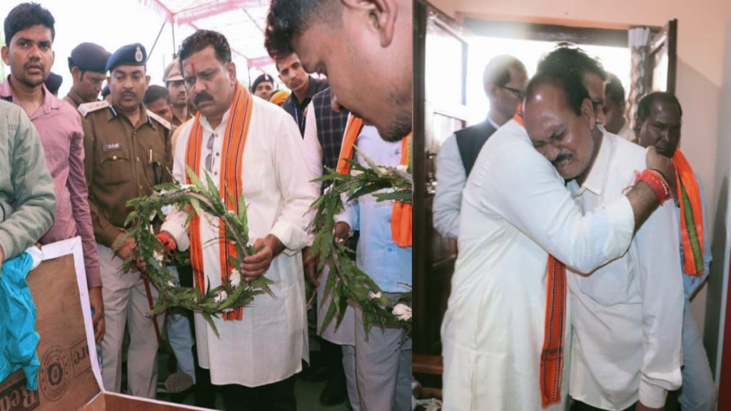 रायपुर. बुधवार को नारायणपुर जिले में आईईडी ब्लास्ट (IED blast) में सक्ती जिले के हसौद निवासी कमलेश साहू शहीद हुए थे. जिनके परिजनों से मिलने के लिए गुरुवार को उप मुख्यमंत्री विजय शर्मा हसौद पहुंचे. जहां उन्होंने शहीद को श्रद्धांजलि अर्पित की. उन्होंने शहीद के पिता से गले लगकर सांत्वना व्यक्त की. साथ ही ईश्वर से दुख की इस घड़ी में शहीद के परिजनों को इस दर्द को सहने के लिए प्रार्थना की.