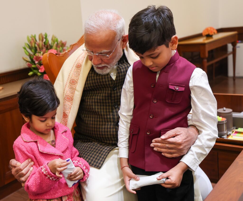 इस अवसर पर मोदी जी ने परिवारजनों से कुशलक्षेम जाना, साथ ही परिवार के बच्चों को दुलारा और आशीर्वाद दिया।
