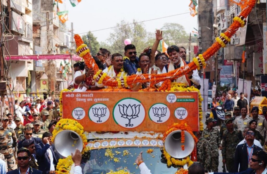 जगदलपुर मुख्यमंत्री विष्णु देव साय के नेतृत्व में आज जगदलपुर में भारतीय जनता पार्टी का ऐतिहासिक और अभूतपूर्व रोड शो आयोजित हुआ, जिसमें भारी जनसमर्थन देखने को मिला। एयरपोर्ट से शुरू हुए इस भव्य रोड शो में भाजपा कार्यकर्ताओं और स्थानीय नागरिकों ने पूरे जोश के साथ भाग लिया। कमल के झंडों से सजी सड़कों पर उमड़े जनसैलाब ने भाजपा की प्रचंड जीत का संकेत दे दिया।