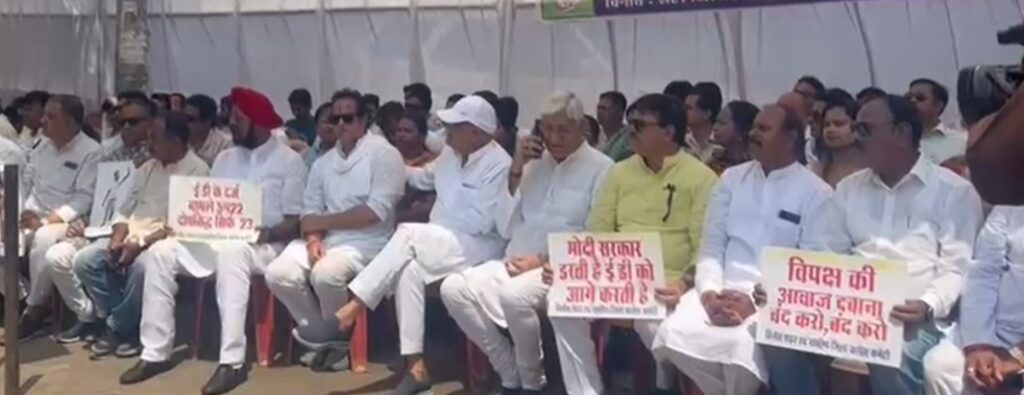 रायपुर. प्रवर्तन निदेशालय (ED) ने नेशनल हेराल्ड केस में विशेष अदालत में चार्जशीट दाखिल की है, जिसमें सोनिया गांधी, राहुल गांधी, सुमन दुबे और कांग्रेस नेता सैम पित्रोदा का नाम शामिल है. इसके विरोध में राजधानी रायपुर के राजिव गांधी चौक स्थित ईडी दफ्तर के बाहर बड़ी संख्या में कांग्रेसी प्रदर्शन करने पहुंचे. मौके पर पूर्व सीएम बघेल, पूर्व डिप्टी सीएम टीएस सिंहदेव समेत कई वरिष्ठ नेता मौजूद रहे.