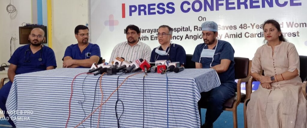 एक असाधारण चिकित्सा कौशल और टीमवर्क का परिचय देते हुए, एमएमआई नारायणा अस्पताल, रायपुर के सीनियर कार्डियोलॉजिस्ट डॉ सुनील गोनियाल एवं उनकी टीम ने 48 वर्षीय महिला की जान बचाई, जो हार्ट अटैक के बाद अचानक कार्डियक अरेस्ट का शिकार हो गई थीं। यह एक अत्यंत दुर्लभ और उच्च जोखिम वाली स्थिति थी, जिसमें त्वरित निर्णय और उक्त हृदय चिकित्सा की आवश्यकता थी।